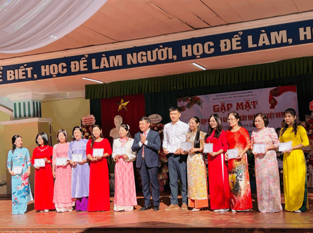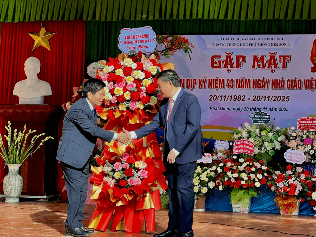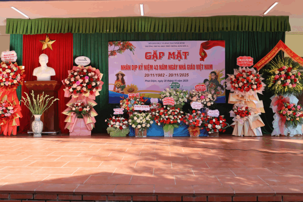 Hòa trong không khí tưng bừng, vui tươi của ngành giáo dục cả nước, sáng 20/11/2025, trường THPT Kim Sơn A đã tổ chức thành công buổi gặp mặt nhân dịp kỷ niệm 43 năm Ngày Nhà giáo Việt Nam (20/11/1982-20/11/2025) để tri ân công ơn của các thầy giáo, cô giáo trong sự nghiệp trồng người.